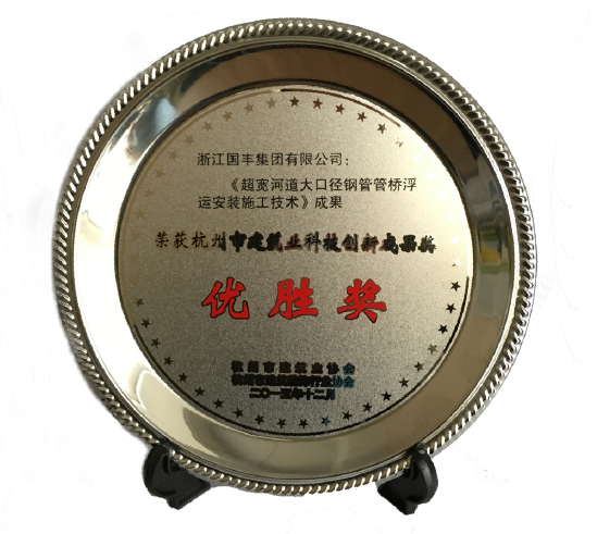 2015年12月28日,浙江國豐集團(tuán)有限公司“超寬河道大口徑鋼管管橋浮運安裝施工技術(shù)”榮獲杭州市建筑業(yè)科技創(chuàng)新成果優(yōu)勝獎。