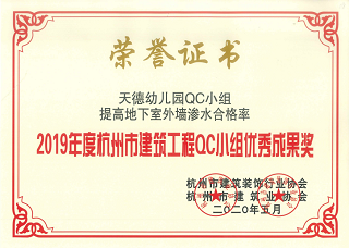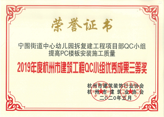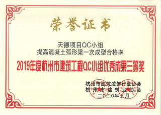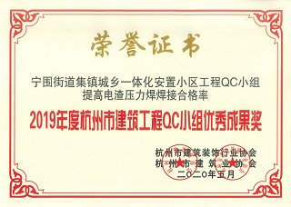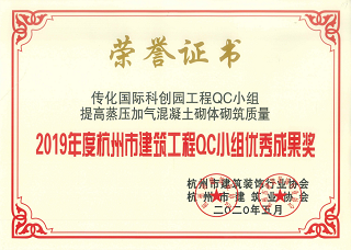 2020年5月,集團(tuán)多個(gè)QC小組榮獲2019年度杭州市建筑工程QC小組優(yōu)秀成果獎(jiǎng)。