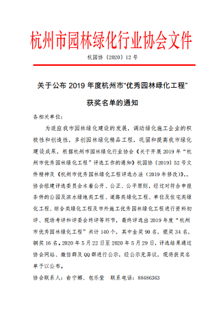 2020年6月,錢江世紀(jì)城人才專項(xiàng)用房室外景觀工程榮獲2019年度杭州市“優(yōu)秀園林綠化工程”(市內(nèi)單位及住宅類)銀獎。