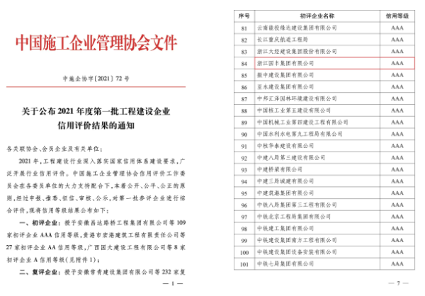 2021年9月,國豐集團榮獲工程建設企業(yè)信用評價AAA級。