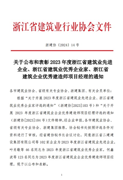 2024年4月,國(guó)豐集團(tuán)榮獲2023年度浙江省建筑業(yè)先進(jìn)企業(yè)。
