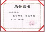 2011年8月1日,浙江國豐集團有限公司獲得麗水市關(guān)心下一代工作委員會辦法的“愛心助學(xué),功在千秋”榮譽證書。