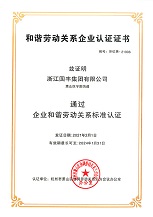 2021年2月,國豐集團(tuán)通過蕭山區(qū)和諧勞動關(guān)系企業(yè)認(rèn)證。