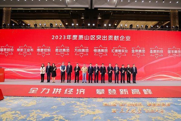 會上表彰了2023年度蕭山區(qū)突出貢獻(xiàn)企業(yè),國豐集團(tuán)名列其中,集團(tuán)董事長俞文燦出席會議并上臺領(lǐng)獎。