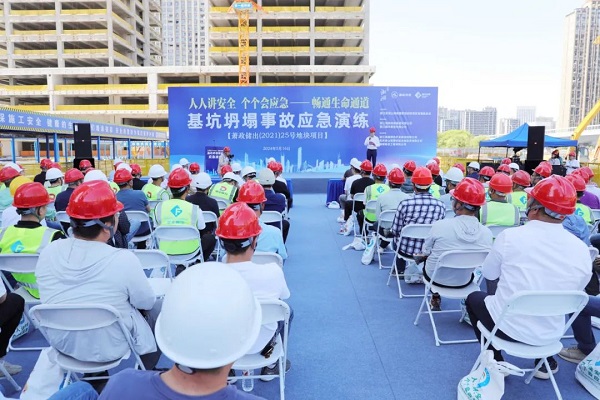 5月 16日下午,在全國(guó)第 23個(gè)安全生產(chǎn)月到來(lái)之際,蕭政儲(chǔ)出(2021)25號(hào)地塊項(xiàng)目在現(xiàn)場(chǎng)舉行了“人人講安全,個(gè)個(gè)會(huì)應(yīng)急——暢通生命通道”基坑坍塌事故應(yīng)急演練活動(dòng)。區(qū)住建局黨委委員、副局長(zhǎng)胡彬峰,湘湖國(guó)家旅游度假區(qū)黨工委委員楊曉峰,浙江湘旅控股集團(tuán)有限公司黨委書(shū)記、董事長(zhǎng)、總經(jīng)理?xiàng)畈?,浙江湘旅綠色開(kāi)發(fā)建設(shè)有限公司總經(jīng)理周建江、監(jiān)理單位負(fù)責(zé)人、公司生產(chǎn)副總沈建良、公司工程部應(yīng)急小組及相關(guān)基礎(chǔ)階段項(xiàng)目人員等參與觀摩此次演練。