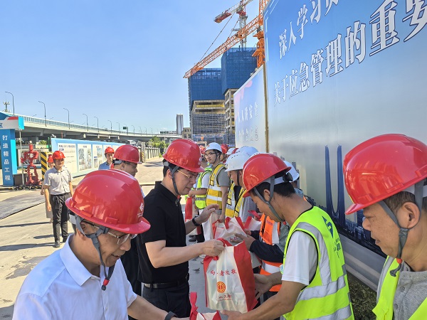 區(qū)領(lǐng)導(dǎo)李軍、吳斌一行來(lái)到杭州市委黨校蕭山分校新校園建設(shè)項(xiàng)目工地,為建筑工人發(fā)放防暑降溫用品,叮囑施工單位落實(shí)主體責(zé)任,繃緊安全生產(chǎn)這根弦,確保一線人員平安度夏,以更好的狀態(tài)投入到項(xiàng)目建設(shè)之中。