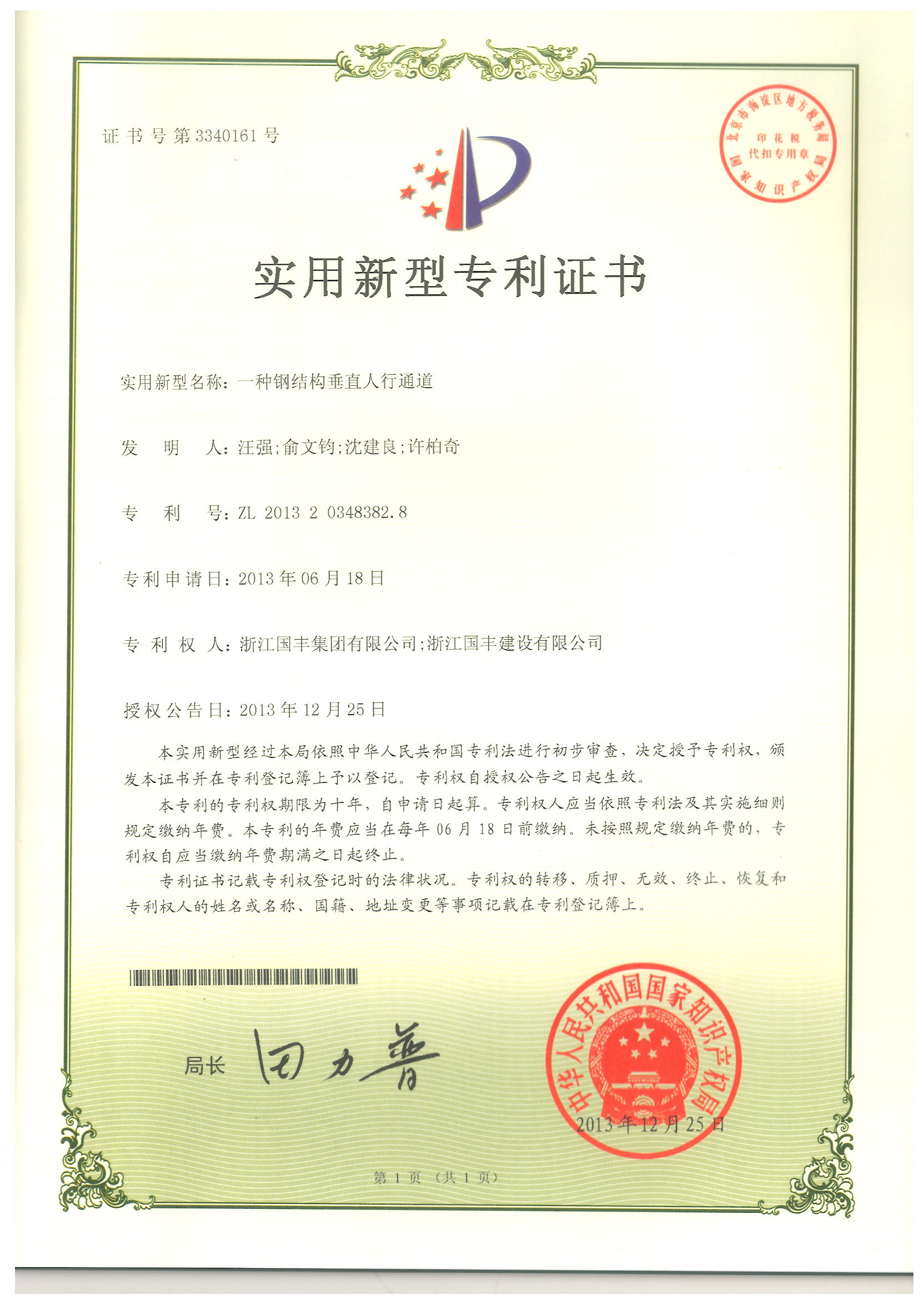 近日,國家知識(shí)產(chǎn)權(quán)局授權(quán)我集團(tuán)一項(xiàng)實(shí)用新型專利,專利名稱為“一種鋼結(jié)構(gòu)垂直人行通道”。該專利利用樓梯梁與印花鐵板組裝成“Z”字形的人行通道,拆裝都較為方便,并且在整個(gè)人行通道的外部設(shè)置圍欄,能夠防止意外發(fā)生,結(jié)構(gòu)簡單、合理,適應(yīng)范圍較廣。該專利的取得解決了現(xiàn)有技術(shù)所存在的水平設(shè)置人行通道無法應(yīng)用于垂直設(shè)置人行通道的問題(目前垂直的通道存在搭建較為復(fù)雜,制造成本較高等一系列問題),進(jìn)一步增加了集團(tuán)的無形資產(chǎn),提高了企業(yè)在建筑行業(yè)的核心競爭力。 (通訊員 汪強(qiáng))