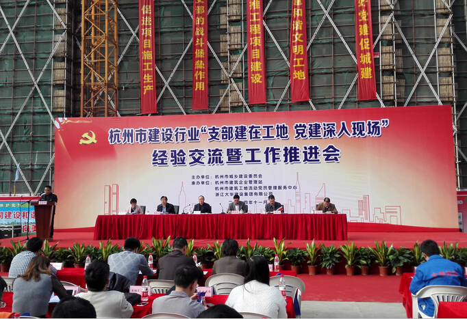 2014年11月27日下午,杭州市建設(shè)行業(yè)“支部建在工地 、黨建深入現(xiàn)場”經(jīng)驗(yàn)交流及工作推進(jìn)會在浙江省委黨校南地塊拆遷安置房項(xiàng)目現(xiàn)場召開,杭州市委、杭州市建委、各縣市有關(guān)領(lǐng)導(dǎo)及全市各建設(shè)、施工單位黨建工作主要負(fù)責(zé)人參加了此次會議。