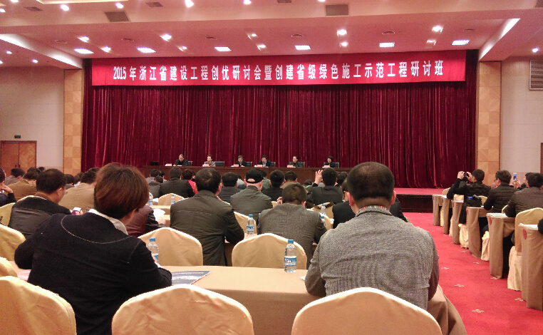 由浙江省建筑業(yè)行業(yè)協(xié)會和浙江省工程建設(shè)質(zhì)量管理協(xié)會組織召開的2015年浙江省建設(shè)工程創(chuàng)優(yōu)研討會暨創(chuàng)建省級綠色施工示范工程研討班于2015年4月7日-8日在杭州召開,各相關(guān)協(xié)會負責(zé)工程創(chuàng)優(yōu)及綠色施工的人員、相關(guān)單位技術(shù)質(zhì)量負責(zé)人、承擔(dān)工程創(chuàng)優(yōu)的項目經(jīng)理等近600多人參加此次研討會。浙江省建筑業(yè)行業(yè)協(xié)會會長趙如龍出席會議并講話,省工程建設(shè)質(zhì)量管理協(xié)會會長樊劍平主持開班儀式。