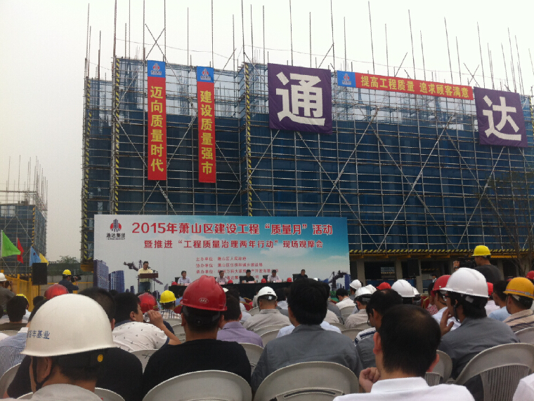 今年9月是全國第38個“質(zhì)量月”,主題為“邁向質(zhì)量時代,建設(shè)質(zhì)量強國”。為進(jìn)一步強化質(zhì)量意識、提高質(zhì)量水平、夯實質(zhì)量基礎(chǔ),為全區(qū)建設(shè)工程質(zhì)量管理工作的發(fā)展凝聚合力,9月18日上午,區(qū)住建局在“萬科大家•世紀(jì)之光”施工現(xiàn)場舉行“質(zhì)量月”建設(shè)工程現(xiàn)場觀摩會,區(qū)政府辦、區(qū)住建局、區(qū)教育局等相關(guān)部門及全區(qū)建設(shè)、施工、監(jiān)理單位負(fù)責(zé)人參加了此次觀摩現(xiàn)場,公司工程部相關(guān)人員及廣孚聯(lián)合國際中心、樾瓏臺名座、湘湖淺埋隧道工程項目部成員參加。