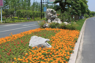 該工程植物配置以鄉(xiāng)土植物為主,主要種植了香樟、桂花、羅漢松、銀杏、紅葉石楠柱、金盞菊、毛鵑、紫薇、麥冬、黑松樁、金森女貞、紅花繼木球、茶花、海桐球等30余種。樹種搭配上,以高大的喬木作為骨干樹種,通過不同形體、色彩樹種的搭配來體現(xiàn)樹木的群體美,局部結(jié)合行車視線打造精致的節(jié)點;利用豐厚的植物群落構(gòu)成疏密有致的綠色空間;運(yùn)用植物的高低錯落疏密關(guān)系進(jìn)行合理搭配,營造出片片“綠色祥云”,利用色葉灌木、地被及花卉形成彩色“氣流”。香樟、銀杏等高大喬木在選苗上采用了長勢良好、樹形優(yōu)美、冠幅飽滿的苗木。采用行列式、叢植、林帶等手法,分別體現(xiàn)出個體美與整體美。(通訊員 沈建良)