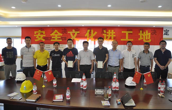 6月15日上午,蕭山區(qū)建設工程安全監(jiān)督站領導來到我公司寧圍集鎮(zhèn)安置房工地,為廣大的農民工兄弟送來了安全文化。領導一行首先對寧圍集鎮(zhèn)安置房工程在工期緊、任務多、要求高等情況下安全有序施工表示肯定,也提出了安全生產更高的要求,同時希望公司項目部進一步增強主體責任,強化安全教育,并當場舉行了授書儀式,希望與會人員突出“安全第一,生命至上,安全發(fā)展”這一工作思路,確保安全生產。
