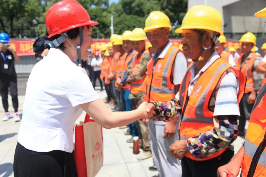 工地現(xiàn)場(chǎng),佟書記對(duì)奮戰(zhàn)在一線的建筑工人表示衷心感謝和誠摯慰問。她與一線工人親切握手,仔細(xì)詢問了作業(yè)環(huán)境和生活狀況,并將夏令清涼用品送到每一位工人手中,對(duì)工人們冒著高溫酷暑,抓安全、保質(zhì)量、趕進(jìn)度所做的工作和取得的成效給予了高度贊揚(yáng)。領(lǐng)導(dǎo)親切的關(guān)懷、真誠的話語,溫暖著每位一線工人的心。