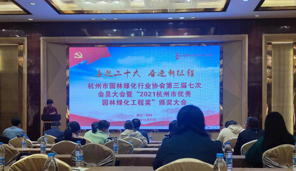 10月13日,杭州市園林綠化行業(yè)協(xié)會第三屆七次會員大會暨“2021年杭州市優(yōu)秀園林綠化工程獎”頒獎大會在杭州萬華國際酒店成功召開。