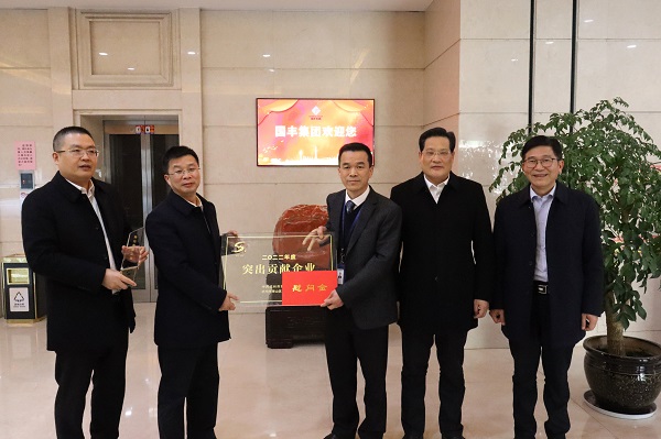 1月29日下午,蕭山區(qū)委常委、組織部長費(fèi)林建,區(qū)人大常委會副主任徐建中,副區(qū)長李國平,區(qū)政協(xié)副主席陳金良以及區(qū)委人才辦、區(qū)人力社保局、規(guī)劃資源蕭山分局、區(qū)住建局主要負(fù)責(zé)人蒞臨國豐集團(tuán),向集團(tuán)送上新春慰問,并授予集團(tuán)“2022年度突出貢獻(xiàn)企業(yè)”稱號。