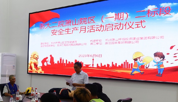 6月6日,浙大二院蕭山院區(qū)一期二標(biāo)段項(xiàng)目部邀請(qǐng)建設(shè)單位、代建單位和全過(guò)程咨詢單位,舉行安全生產(chǎn)月活動(dòng)啟動(dòng)儀式。項(xiàng)目部將圍繞今年安全生產(chǎn)月“人人講安全、個(gè)個(gè)會(huì)應(yīng)急”的主題,結(jié)合安全知識(shí)競(jìng)賽、現(xiàn)場(chǎng)隱患排查、安全生產(chǎn)教育、現(xiàn)場(chǎng)應(yīng)急演練等一系列活動(dòng),提高全員安全意識(shí),增長(zhǎng)安全知識(shí),提升應(yīng)急能力。