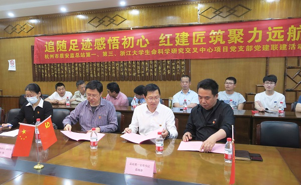 隨后召開座談會。會上,市質(zhì)監(jiān)總站第一、第三黨支部與浙江大學(xué)交叉中心項目黨支部簽署了“黨建聯(lián)建”結(jié)對協(xié)議書。根據(jù)協(xié)議,聯(lián)建三方將搭建“資源共享、優(yōu)勢互補、互相促進、共同提高”的黨建工作新格局,助推工程建設(shè)高質(zhì)量發(fā)展。