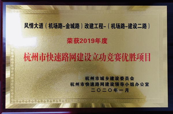 2020年1月,風(fēng)情大道(機(jī)場(chǎng)路-金城路)改建工程-(機(jī)場(chǎng)路-建設(shè)二路)榮獲“2019年度杭州市快速路網(wǎng)建設(shè)立功競(jìng)賽優(yōu)勝項(xiàng)目”。