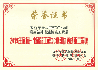 2020年5月,集團(tuán)多個(gè)QC小組榮獲2019年度杭州市建筑工程QC小組優(yōu)秀成果獎(jiǎng)。