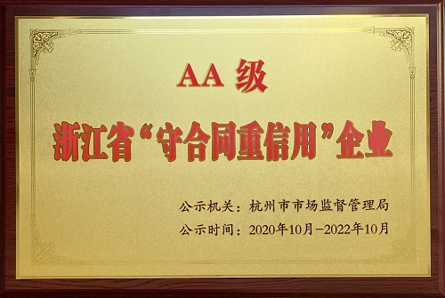 2020年10月,浙江國豐園林景觀有限公司榮獲AA級(jí)浙江省“守合同重信用”企業(yè)。