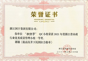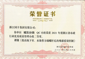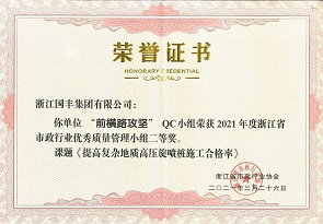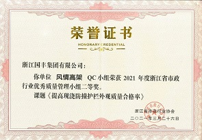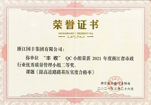 2021年3月,國豐集團QC小組榮獲2021年度浙江省市政行業(yè)優(yōu)秀質(zhì)量管理小組一、二、三等獎。