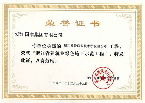2021年12月,城東分類減量綜合體、浙江建設(shè)職業(yè)技術(shù)學(xué)院綜合樓等兩個項目榮獲浙江省建筑業(yè)綠色施工示范工程。