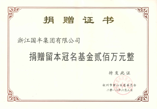 2016年6月3日,浙江國豐集團有限公司捐贈留本冠名基金貳佰萬元整。