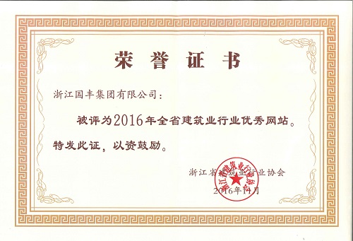 2016年11月30日,浙江國豐集團有限公司網(wǎng)站被評為“2016年浙江省建筑業(yè)行業(yè)優(yōu)秀網(wǎng)站”。