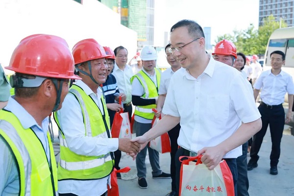 市委常委、區(qū)委書(shū)記孫旭東,區(qū)領(lǐng)導(dǎo)姜永華、童一峰一行來(lái)到浙江大學(xué)杭州國(guó)際科創(chuàng)中心二期工程項(xiàng)目工地,看望慰問(wèn)高溫下堅(jiān)守一線的工程建設(shè)者們,為他們送去清涼消暑慰問(wèn)品,感謝他們?yōu)槌鞘邪l(fā)展所作出的貢獻(xiàn),叮囑大家要注意生產(chǎn)安全,合理安排作息時(shí)間,做好高溫防護(hù)工作。在察看各項(xiàng)目工程進(jìn)度后,孫書(shū)記強(qiáng)調(diào)要在抓好安全生產(chǎn)、施工進(jìn)度及工程質(zhì)量的同時(shí),合理分配施工力量,科學(xué)優(yōu)化作業(yè)時(shí)間,有效落實(shí)各項(xiàng)防暑降溫措施,切實(shí)保障一線建設(shè)工人的健康與安全,把黨和政府的關(guān)心關(guān)愛(ài)送到廣大勞動(dòng)者的心坎上。