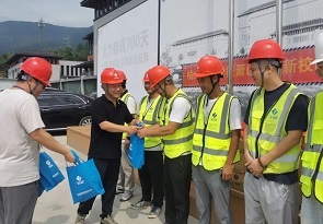 來到項(xiàng)目現(xiàn)場,集團(tuán)班子領(lǐng)導(dǎo)將公司精心準(zhǔn)備的慰問品逐一發(fā)到一線員工手中。一份份防暑藥品、清涼用品、洗護(hù)用品寄托著公司對一線員工們辛勤付出的深深敬意和深切關(guān)懷。