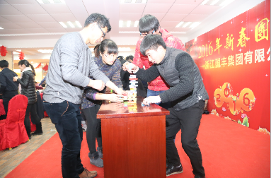 群羊辭舊歲,金猴鬧新春。2月4日,國豐集團(tuán)2016年新春團(tuán)拜會在集團(tuán)總結(jié)表彰大會后隆重舉行,公司領(lǐng)導(dǎo)、全體員工和各位嘉賓歡聚一堂,喜迎新春。董事長俞文燦先生在致辭中對多年來關(guān)心支持國豐發(fā)展的各位嘉賓和全體國豐員工表示最衷心的感謝!希望全體國豐人在新的一年里要以更加飽滿的工作熱情,同心協(xié)力、真抓實干、奮力拼搏,共創(chuàng)國豐集團(tuán)更加美好的明天!
