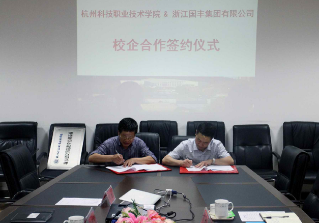 2016年6月1日10時(shí),浙江國豐集團(tuán)與杭州科技職業(yè)技術(shù)學(xué)院校企合作簽約及授牌儀式順利舉行。集團(tuán)常務(wù)副總田利剛代表公司與杭州科技職業(yè)技術(shù)學(xué)院城建學(xué)院沈先榮院長簽訂了校企合作協(xié)議。