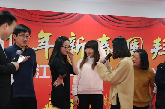 晚會在一曲大合唱《相親相愛一家人》中拉開了序幕,歌曲恰如其分地體現(xiàn)了國豐人的心聲。確實,國豐就是快樂的大家庭,在這里我們實現(xiàn)了人生的價值,工作獲得了肯定,我們有緣相聚在一起,大家就是相親相愛的一家人。隨后,動聽的歌曲、驚險刺激的游戲、激動人心的抽獎環(huán)環(huán)相扣,給大家?guī)砹藷o限的快樂,歌聲、掌聲、歡呼聲一直在會場上蕩漾。整場聯(lián)歡會高潮迭起,完美呈現(xiàn)出浙江國豐集團(tuán)這個大家庭的歡樂和諧。