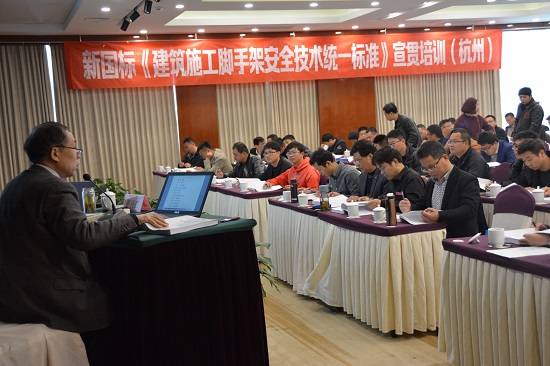 培訓(xùn)會(huì)上,由來自浙江寶業(yè)集團(tuán)有限公司的葛興杰老師,對(duì)新國標(biāo)《建筑施工腳手架安全技術(shù)統(tǒng)一標(biāo)準(zhǔn)》報(bào)批稿內(nèi)容作出一一詳解。正式標(biāo)準(zhǔn)將于2017年7月1日起施行。