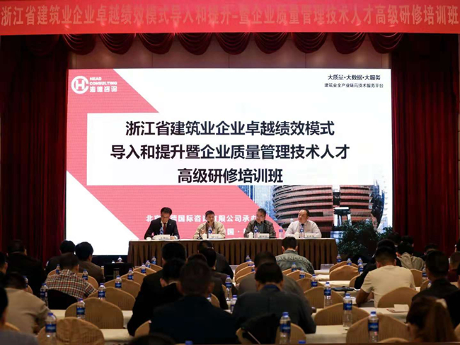 為進(jìn)一步提升企業(yè)卓越績(jī)效,提高全省建設(shè)工程品質(zhì),由浙江省建筑業(yè)管理局、浙江省質(zhì)量技術(shù)監(jiān)督管理局牽頭,浙江省工程建設(shè)質(zhì)量管理協(xié)會(huì)指導(dǎo),中建協(xié)認(rèn)證中心、北京海德國(guó)際咨詢有限公司承辦的“浙江省建筑業(yè)企業(yè)卓越績(jī)效模式導(dǎo)入和提升暨企業(yè)質(zhì)量管理技術(shù)人才高級(jí)研修培訓(xùn)班”于10月23日-26日在杭州市海外海納川大酒店舉行。本期培訓(xùn)班為期四天,來(lái)自全省各市、縣224家企業(yè),約350名企業(yè)質(zhì)量管理負(fù)責(zé)人以及具有中、高級(jí)職稱的專業(yè)技術(shù)人才參加了培訓(xùn)。
