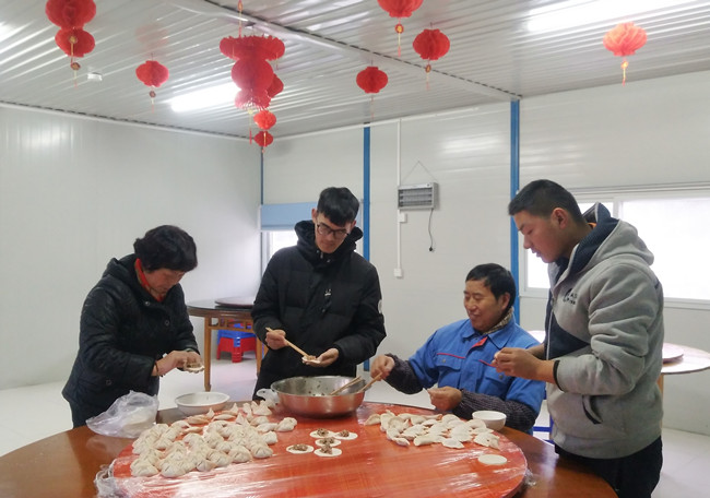 時光飛逝,辭去2018年,喜迎2019年。在這辭舊迎新的時刻,浙江國豐集團(tuán)大毛塢—仁和大道供水管道工程I標(biāo)項(xiàng)目部,為讓一線員工在寒冷的冬天感受到“家”的溫暖與溫馨,項(xiàng)目經(jīng)理特意安排質(zhì)安科為員工送上元旦活動三部曲:個人及集體祝福語錄制;寫春聯(lián)貼祝福;包餃子吃團(tuán)圓飯。元旦前夕,質(zhì)安科提前謀劃 、精心準(zhǔn)備,號召全體員工積極參與喜迎元旦活動。大家分工明確,有的幫忙錄制祝福語,有的幫忙貼春聯(lián),有的幫忙包餃子,三部曲在溫馨、和諧、喜慶的氣氛中陸續(xù)完成。