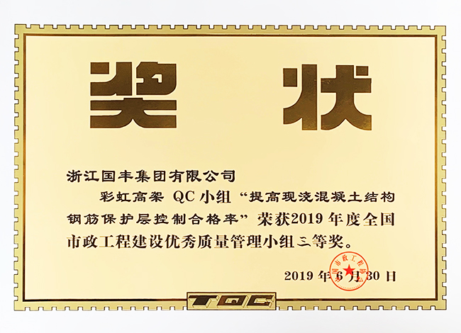 6月29日至30日,中國(guó)市政工程協(xié)會(huì)在福建廈門(mén)組織召開(kāi)了2019年度全國(guó)市政工程建設(shè)優(yōu)秀QC小組成果表彰會(huì),全國(guó)1000余家市政企業(yè)參加會(huì)議。我集團(tuán)組織申報(bào)的彩虹高架QC小組《提高現(xiàn)澆混凝土結(jié)構(gòu)鋼筋保護(hù)層合格率》,榮獲“全國(guó)市政工程建設(shè)優(yōu)秀質(zhì)量管理小組三等獎(jiǎng)”。
