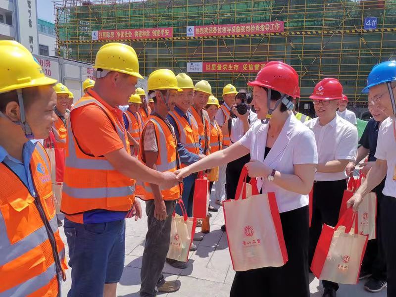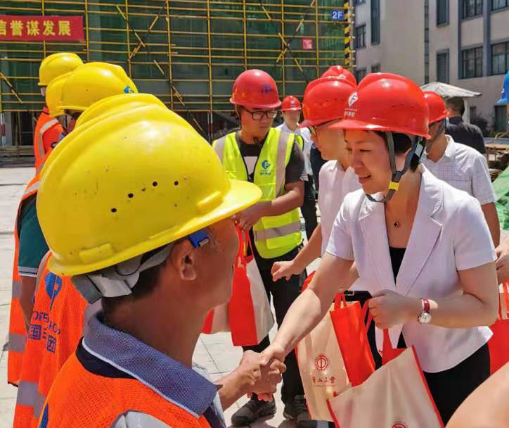 工地現(xiàn)場(chǎng),佟書記對(duì)奮戰(zhàn)在一線的建筑工人表示衷心感謝和誠摯慰問。她與一線工人親切握手,仔細(xì)詢問了作業(yè)環(huán)境和生活狀況,并將夏令清涼用品送到每一位工人手中,對(duì)工人們冒著高溫酷暑,抓安全、保質(zhì)量、趕進(jìn)度所做的工作和取得的成效給予了高度贊揚(yáng)。領(lǐng)導(dǎo)親切的關(guān)懷、真誠的話語,溫暖著每位一線工人的心。