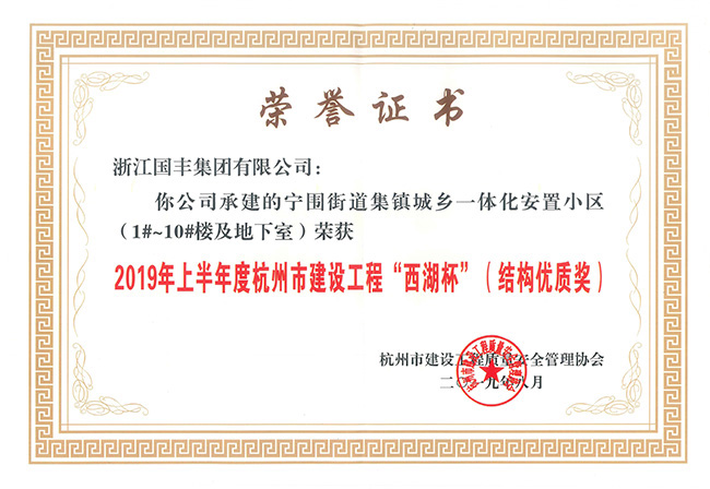 近日,杭州市建設(shè)工程質(zhì)量安全管理協(xié)會公布了2019年上半年度杭州市建設(shè)工程“西湖杯”(結(jié)構(gòu)優(yōu)質(zhì)獎)獲獎名單,123項工程獲得表彰。我集團(tuán)承建的杭政儲出(2016)43號地塊商業(yè)商務(wù)用房工程、寧圍街道集鎮(zhèn)城鄉(xiāng)一體化安置小區(qū)工程、富政儲出(2013)17號地塊項目一標(biāo)段工程榜上有名!