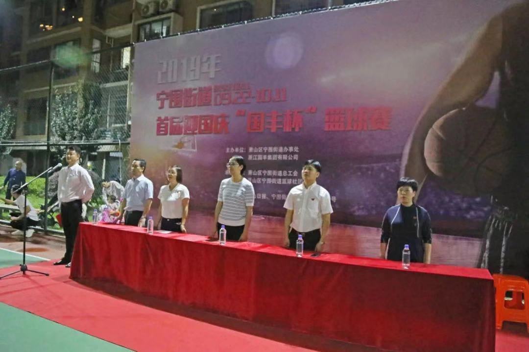 秋風(fēng)送爽,丹桂飄香。在慶祝新中國(guó)成立70周年之際,9月22日晚,寧圍街道首屆“國(guó)豐杯”籃球賽正式開(kāi)幕。此次籃球賽由寧圍街道辦事處、浙江國(guó)豐集團(tuán)有限公司主辦,寧圍街道總工會(huì)、寧圍街道籃球社團(tuán)承辦。寧圍街道黨工委副書(shū)記柳玉華、辦事處副主任徐妙華,我集團(tuán)常務(wù)副總田利剛以及參賽的19支球隊(duì)出席了本次開(kāi)幕儀式。