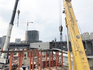 6月14日10時(shí),隨著第一節(jié)鋼箱梁安全、平穩(wěn)地吊裝就位在彩虹高架5號(hào)橋墩上,由我集團(tuán)承建的彩虹大道二期工程鋼箱梁首次吊裝取得圓滿成功,標(biāo)志著該工程進(jìn)入鋼箱梁施工階段。