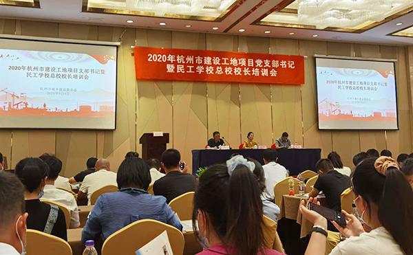 9月4日下午,杭州市建筑業(yè)管理服務(wù)站組織各區(qū)縣(市)住建局、西湖區(qū)名勝風(fēng)景區(qū)管委會風(fēng)景園林局、錢塘新區(qū)建設(shè)局、有關(guān)企業(yè)和工地黨組織、民工學(xué)??傂5日匍_2020年杭州市建設(shè)工地項(xiàng)目黨支部書記暨民工學(xué)校總校校長培訓(xùn)會。我公司民工學(xué)校負(fù)責(zé)人和雙橋單元XH0202-11地塊農(nóng)居安置房項(xiàng)目臨時黨支部負(fù)責(zé)人參加會議。