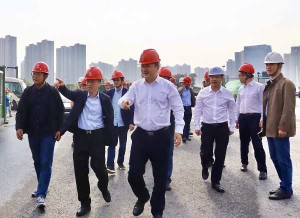 為全面提升我區(qū)建筑工地標準化管理水平,10月20日上午,副區(qū)長方軍到風情大道快速路項目檢查標準化工地整治工作,區(qū)府辦、區(qū)住建局、區(qū)城管局、生態(tài)環(huán)境蕭山分局、區(qū)城投集團等相關負責人陪同檢查,我集團董事長俞文燦陪同。