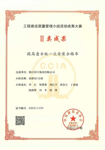 7月6日至7日,由中國建筑業(yè)協(xié)會組織的“全國工程建設(shè)質(zhì)量提升暨QC小組活動經(jīng)驗交流會”在安徽合肥召開,共計550余個QC成果參與評選。我公司的“提高疊合板一次安裝合格率”QC成果,在評選中表現(xiàn)優(yōu)異,榮獲“全國工程建設(shè)質(zhì)量管理優(yōu)秀QC小組II類成果”。