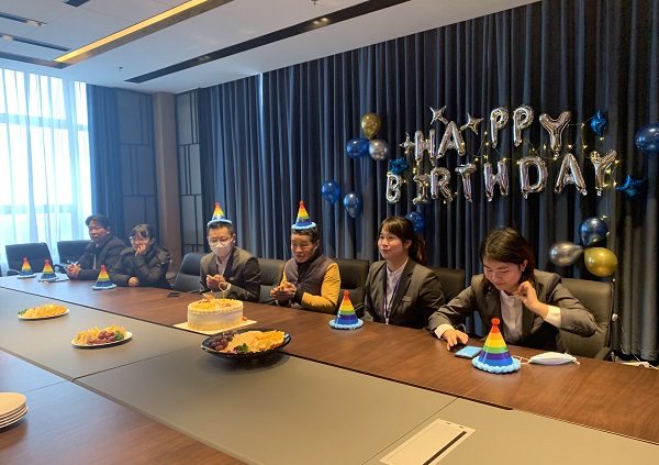 當(dāng)天下午,會(huì)議室已變成了一個(gè)生日派對(duì)的專(zhuān)場(chǎng),桌上擺放好了蘊(yùn)含著公司對(duì)壽星們生日祝福的蛋糕和水果,歡樂(lè)的生日快樂(lè)歌在派對(duì)現(xiàn)場(chǎng)無(wú)限循環(huán)著,只等壽星們款款落座。
